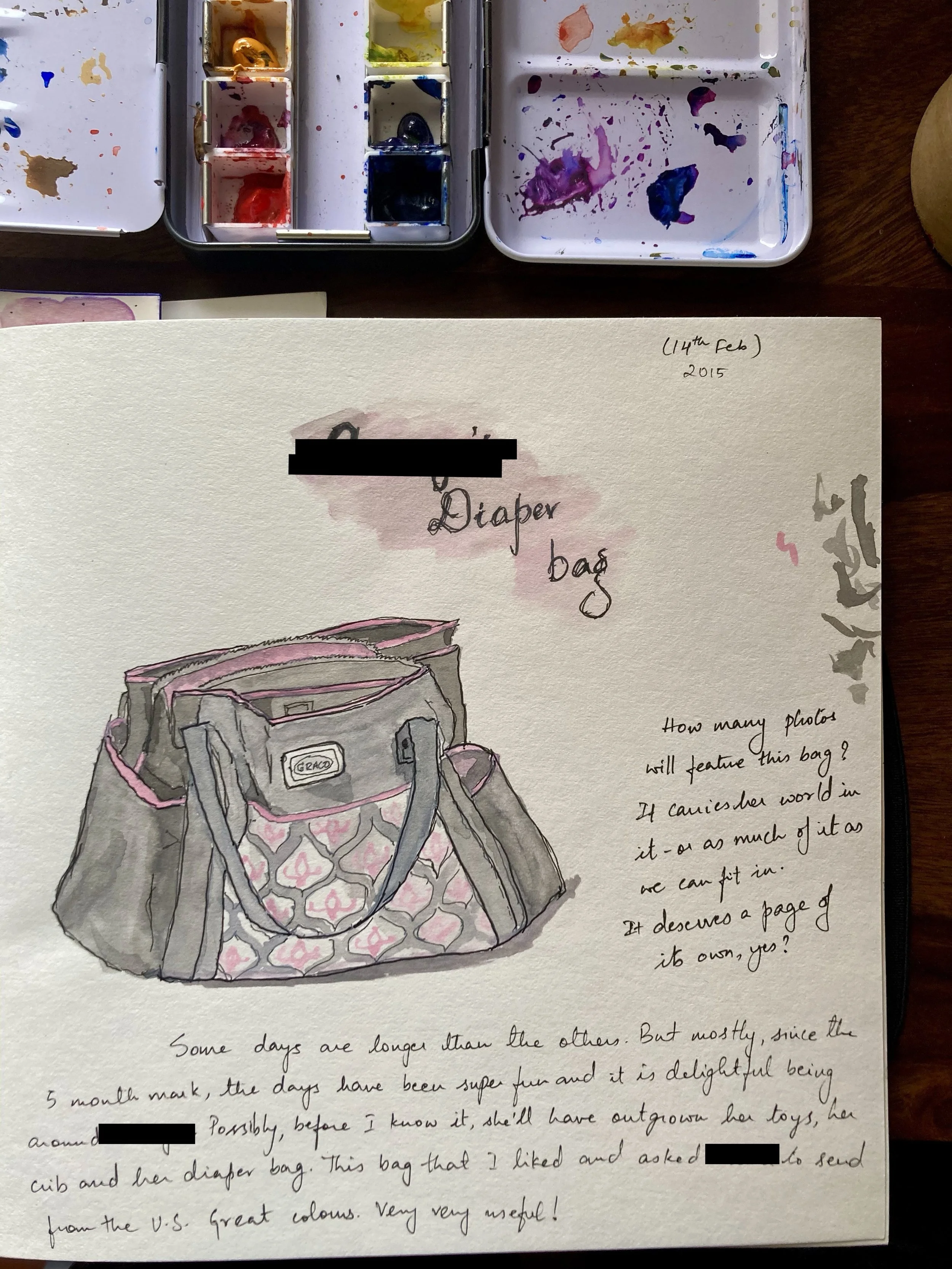 A page from my sketchbook, when my daughter was about 7 months old. “Some days are longer than the others“, I wrote!